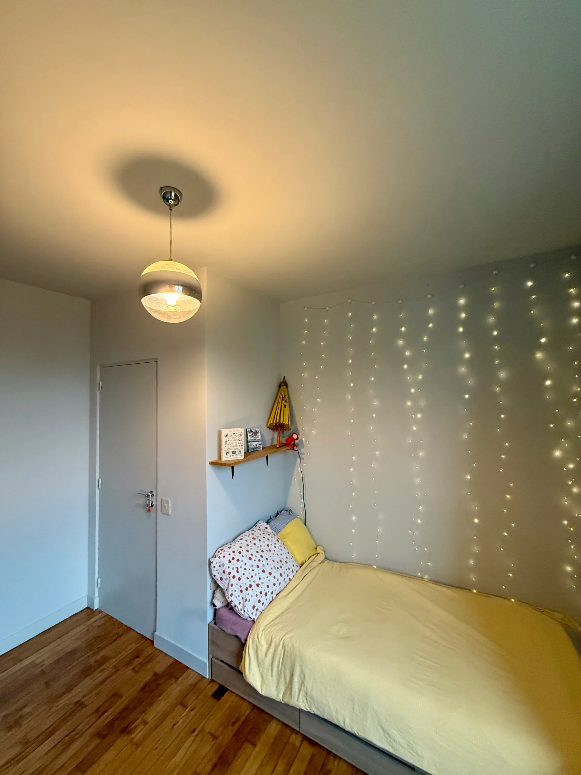 L’intervention a consisté à restructurer un plateau de 70 m² pour créer trois chambres, une salle de bain et un WC. Chaque pièce affirme son identité par une mise en couleur dans des tons pastels.