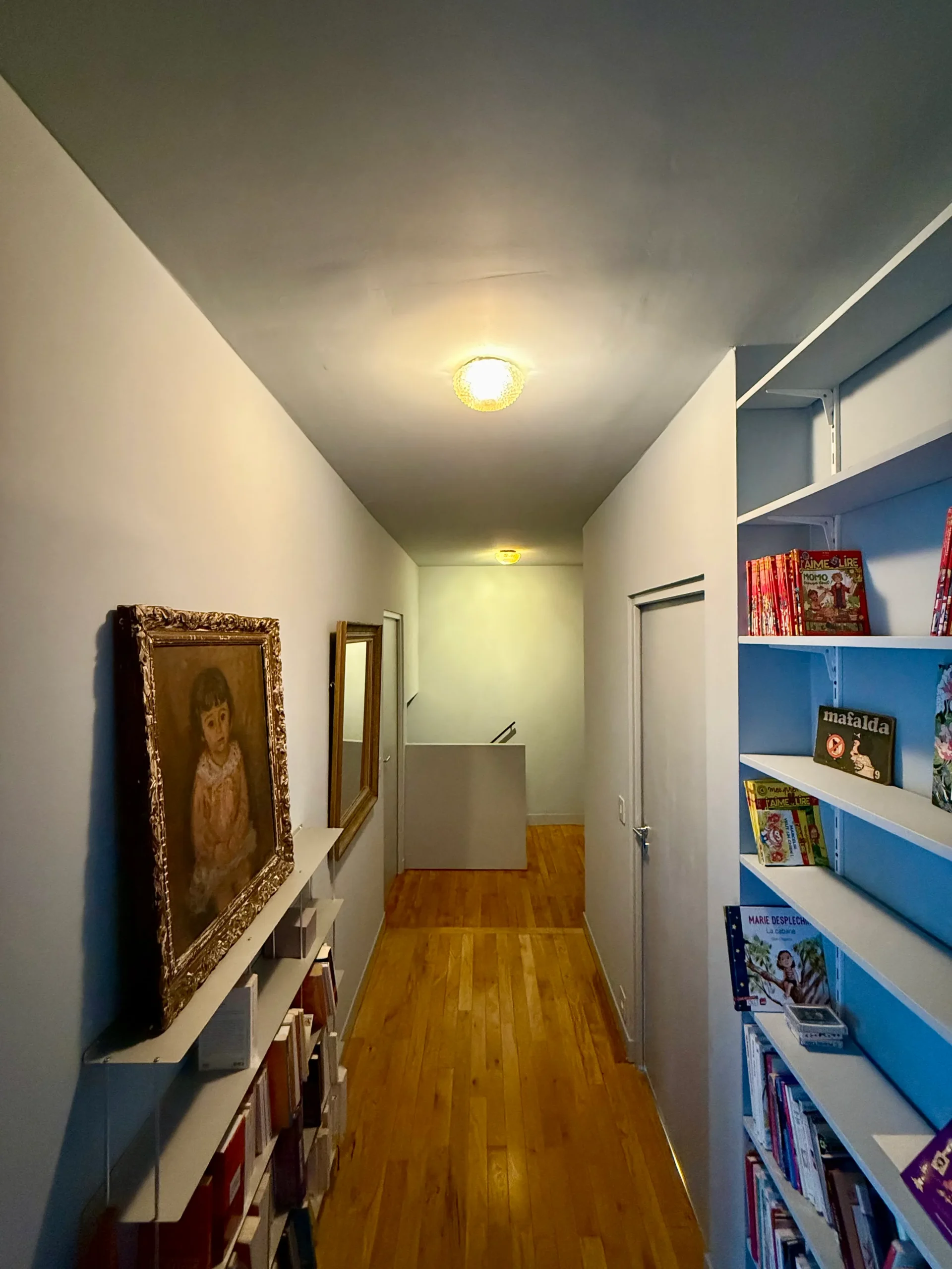À Aubervilliers, nous avons repensé l’intégralité de l’étage d’une maison de 70 m2. Ce projet de redistribution mise sur une identité colorée singulière pour chaque pièce et sur un travail de menuiserie sur mesure intégré.